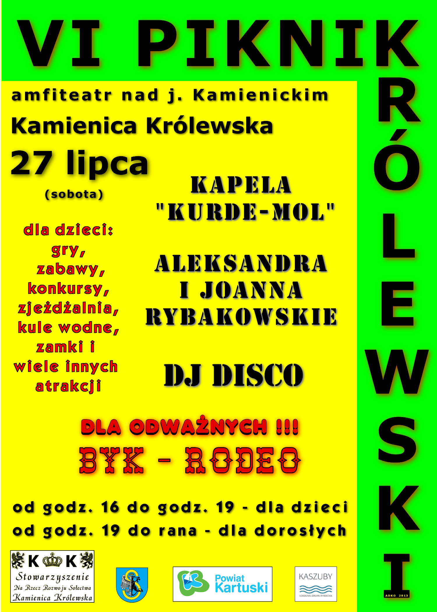 LGR Kaszuby serdecznie zaprasza do udziału w Pikniku Królewskim organizowanym przez Stowarzyszenie Na Rzecz Rozwoju Sołectwa Kamienica Królewska, który odbędzie się 27 lipca 2012 r. (sobota) o godz. 16.00 w amfiteatrze nad Jeziorem Kamienickim w Kamienicy Królewskiej.