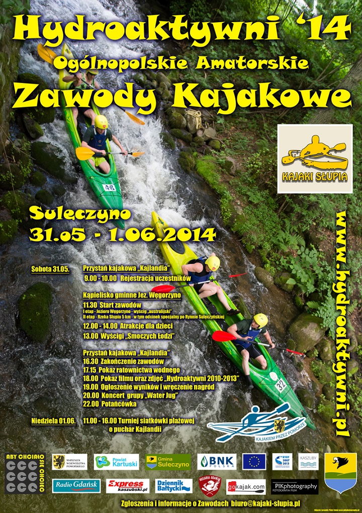 LGR Kaszuby serdecznie zaprasza do udziału w Amatorskich Zawodach Kajakowych HYDROAKTYWNI 2014 w dniu 31 maja 2014r. (sobota) w Sulęczynie.